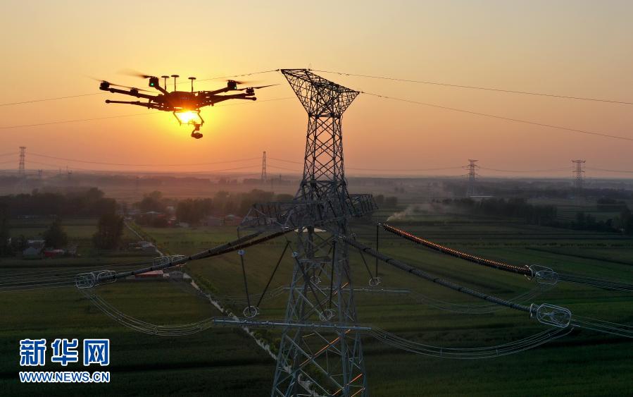 这是8月27日,巡检无人机在青海—河南±800千伏特高压直流工程豫南换流变电站外巡线(无人机照片)。新华社记者 李嘉南 摄