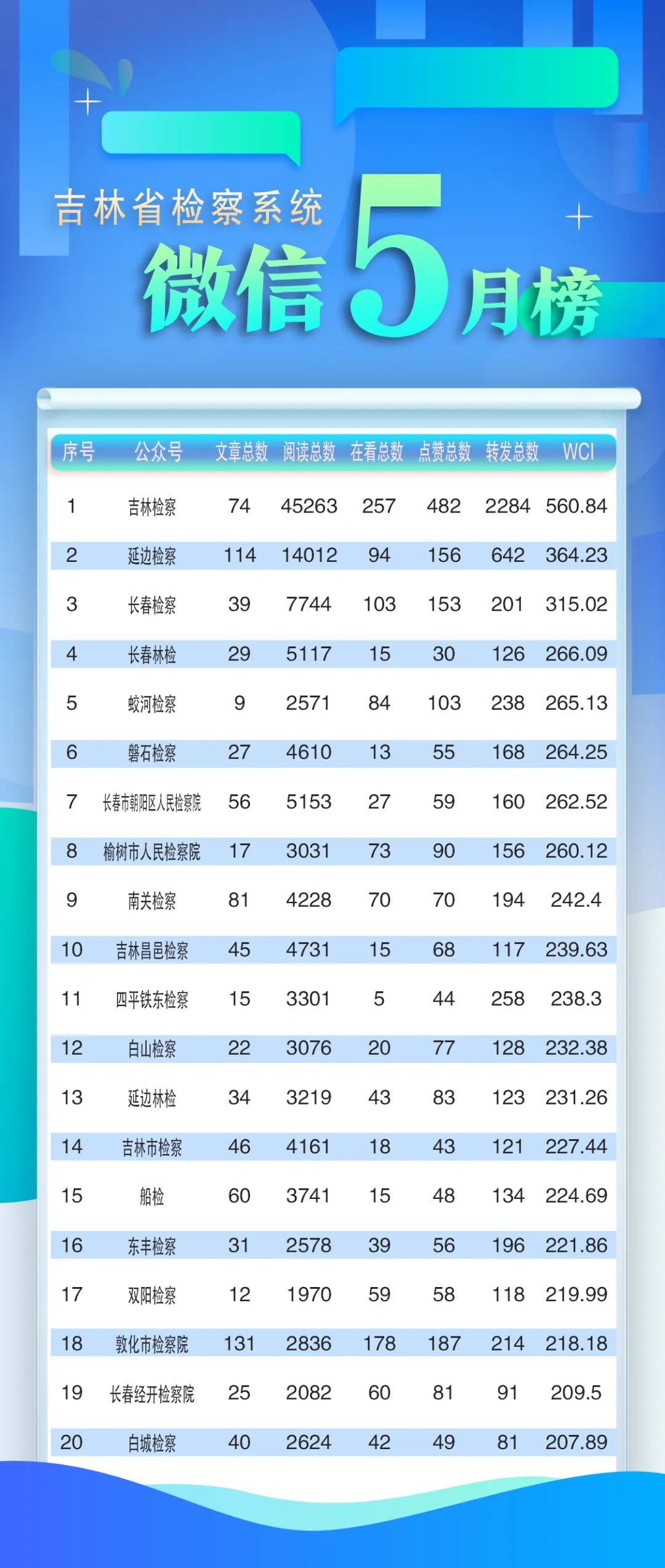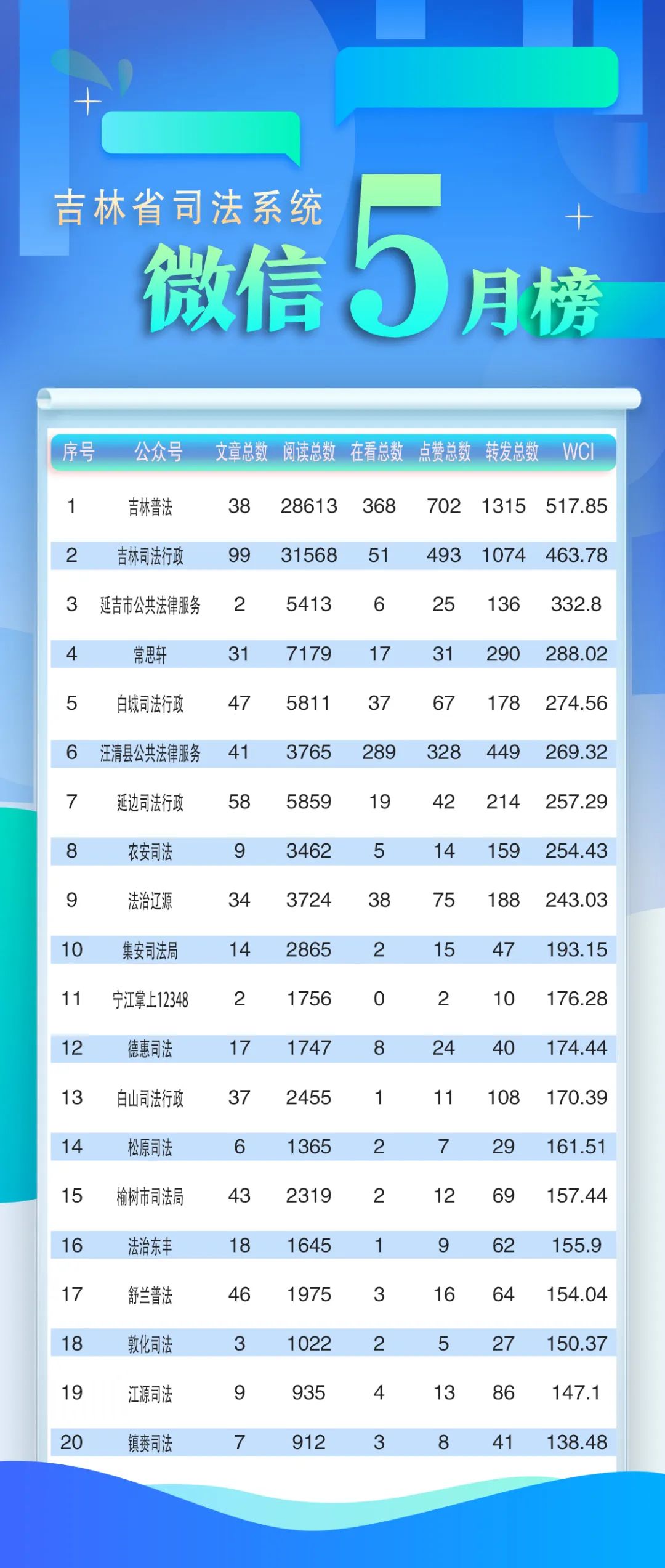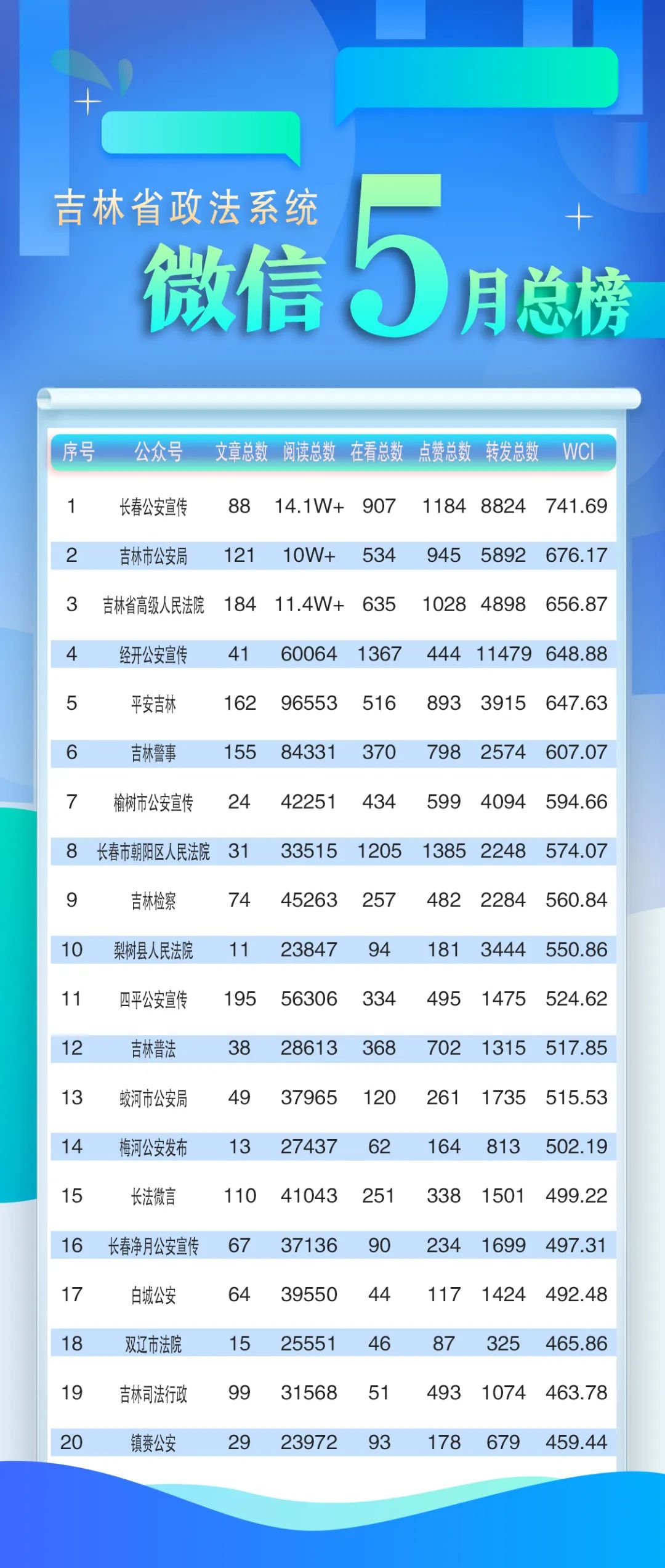 吉林省政法系统微信公众号2025年5月榜单来了!