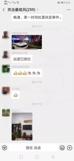 在巡逻期间,干警路遇群众打架,领队刘飞及时报警,成功和黄河路派出所对接,化解其双方纠纷,确保了国庆期间的维稳工作。