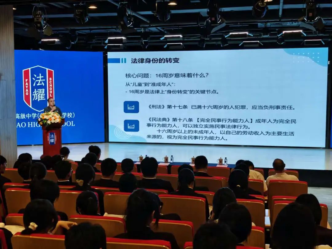 校园是梦想起航的港湾,法治是护航前行的灯塔。近日,西青法院中北法庭法官靳广飞走进法耀高级中学,作为法治副校长参加了“法耀高级中学十六周岁成年礼”,并为同学们带来了法治讲座。