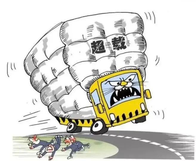 货运车辆超载,会导致轮胎因负荷过重而变形甚至爆裂,还容易使车辆转向困难、刹车失灵,进而导致交通事故。