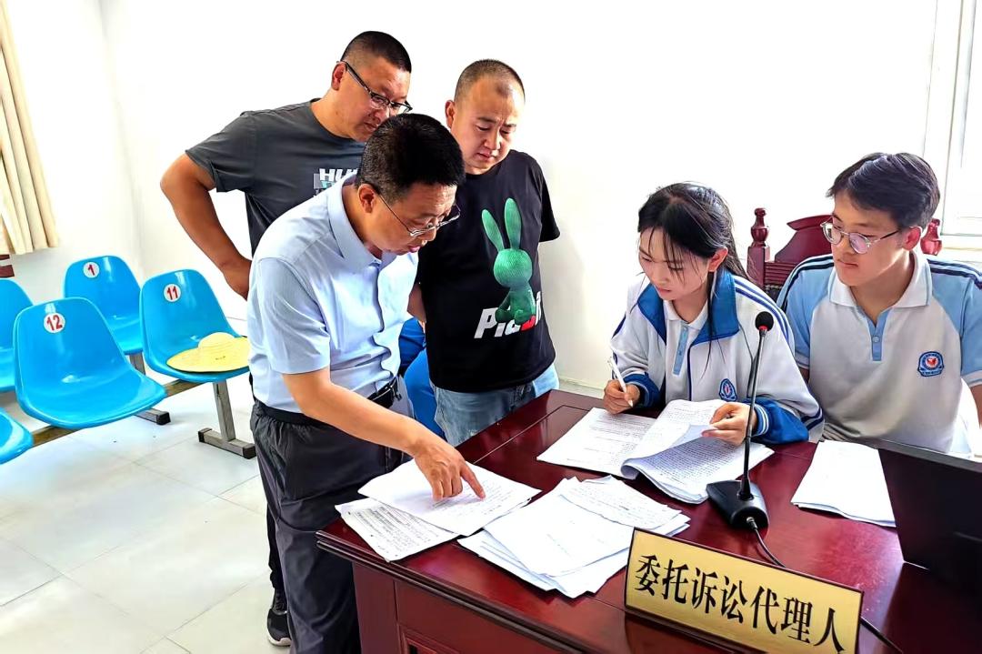在模拟法庭正式"开庭"前,驿马中学师生走进驿马法庭进行实地参观学习,并开展了精心筹备和反复演练。驿马法庭庭长寇文晖、白马法庭法官助理李正刚化身专业指导老师,从庭审程序的规范要求、各角色的职责定位,到法律条文的理解运用,进行了全方位、细致入微的讲解指导,确保每个环节都精准到位,为模拟法庭活动的高质量开展奠定了坚实基础。