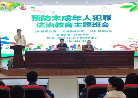 为进一步增强未成年人的法律意识和自我保护能力,有效预防未成年人违法犯罪,扩展群众工作“石榴籽”工程宣传教育青少年法治宣传工作覆盖面6月18日,司法局联合汶川县未成年人保护中心、县教育局、民政局在七一映秀中学开展了一场预防未成年人犯罪法治教育主题班会。