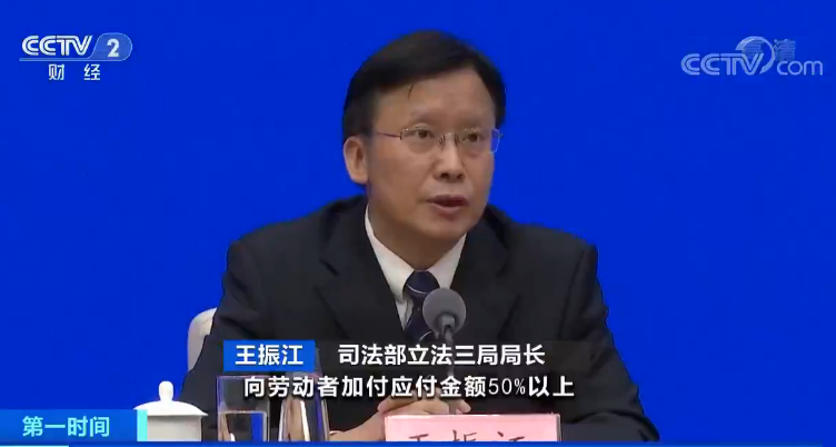 司法部立法三局局长 王振江对违反规定拖欠农民工工资的、逾期不支付的,向劳动者加付应付金额50%以上、100%以下的赔偿金;涉嫌构成拒不支付劳动报酬罪的,及时移送司法机关追究刑事责任。