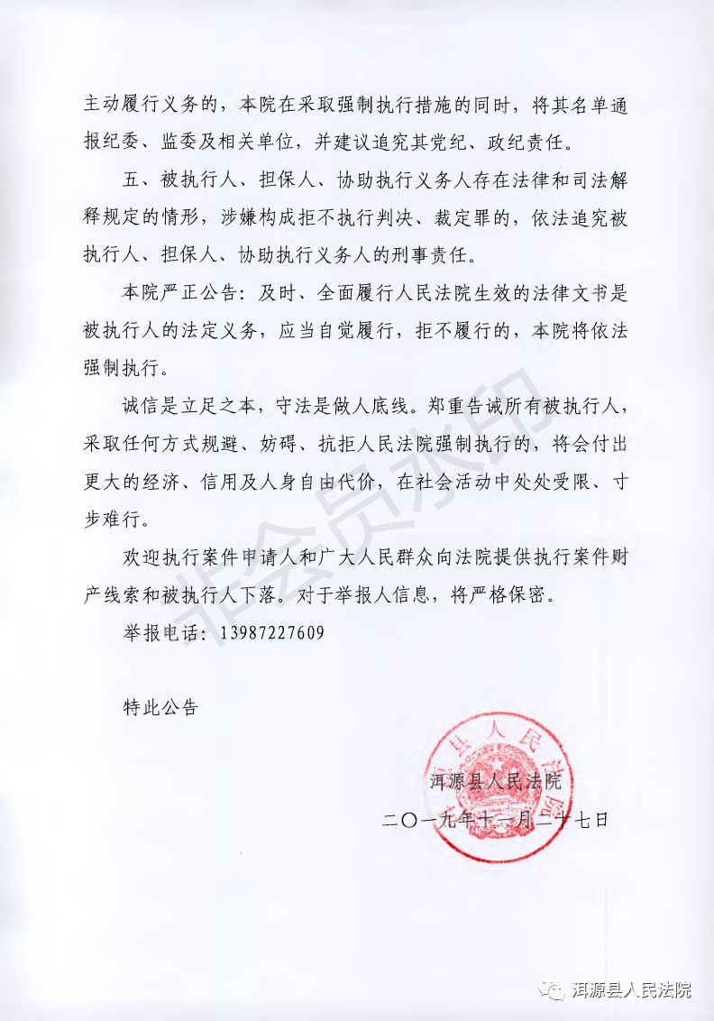 执行案号:(2019)云2930执16号