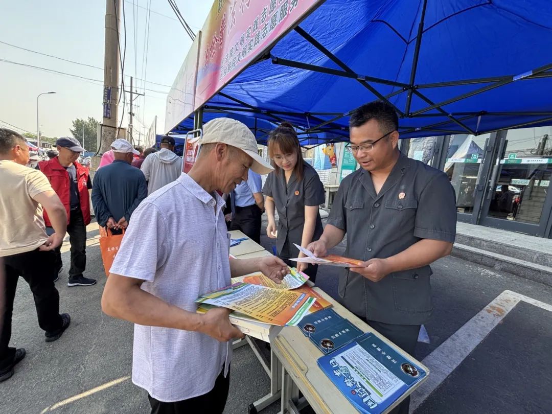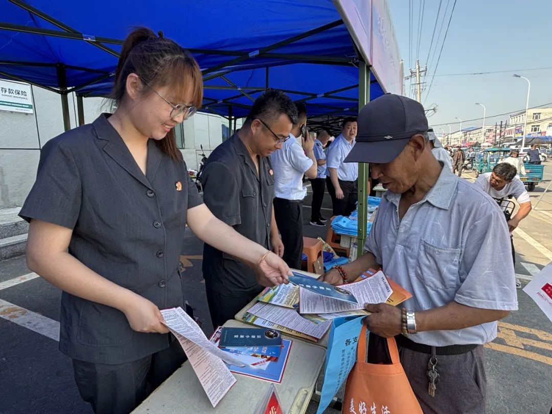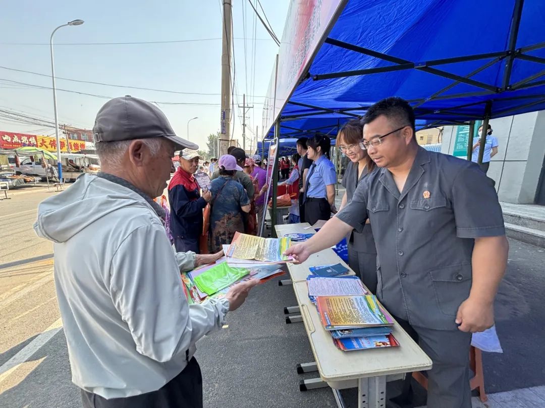 活动当天,阳光和煦,集市上人潮涌动。法院干警们精神饱满,早早布置好宣传阵地,整齐摆放好精心准备的各类普法宣传资料。干警们主动迎向过往群众,热情递上《民法典与生活同行》《防范电信网络诈骗手册》《诉讼服务指南》等图文并茂的宣传单页。这些“法律干货”内容贴近民生、通俗易懂,瞬间吸引了众多赶集群众的驻足翻阅和争相领取,成为集市上一道独特的“法治风景线”。