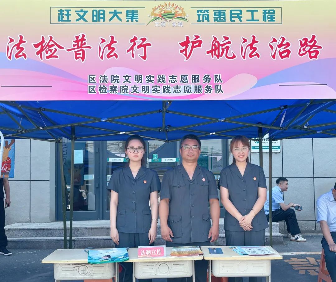 为深入推进法治宣传教育,增强群众法治意识,让法治精神融入群众日常生活,6月24日,双阳法院积极响应号召,参与“赶文明大集 筑惠民工程”大型文明实践活动。活动现场,法院与检察院联合设立“法检普法行,护航法治路”主题摊位,以“接地气”的方式将法律服务送到群众“家门口”,为这场惠民盛宴增添了浓郁的法治亮色。