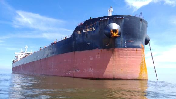 图:JZ船非法改装加长船首跳板,船首盲区增大