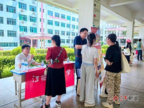 大江网/大江新闻客户端讯 (通讯员胡运美)为帮助广大学生和家长深入了解高校招生政策,掌握科学的志愿填报方法,6月25日下午,升学就业服务平台“升学在线”在永丰中学开展了一场志愿填报和招生政策咨询会,吸引了合肥工业大学、江西财经大学等省内外20余所院校参与,为学生和家长提供全面的升学咨询服务。