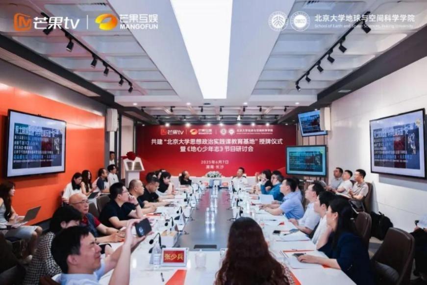 6月7日,湖南广播影视集团旗下湖南快乐阳光互动娱乐传媒有限公司(芒果TV)与北京大学地球与空间科学学院在长沙举办了共建“北京大学思想政治实践课教育基地 ”授牌仪式暨思政科普综艺节目《地心少年志》研讨会,会上就思政教育达成合作。北京大学地球与空间科学学院领导、芒果 TV及芒果互娱相关领导、地球与行星科学拔尖人才培养联盟单位代表以及长沙市中学校长代表、博雅1909团队共同出席活动。