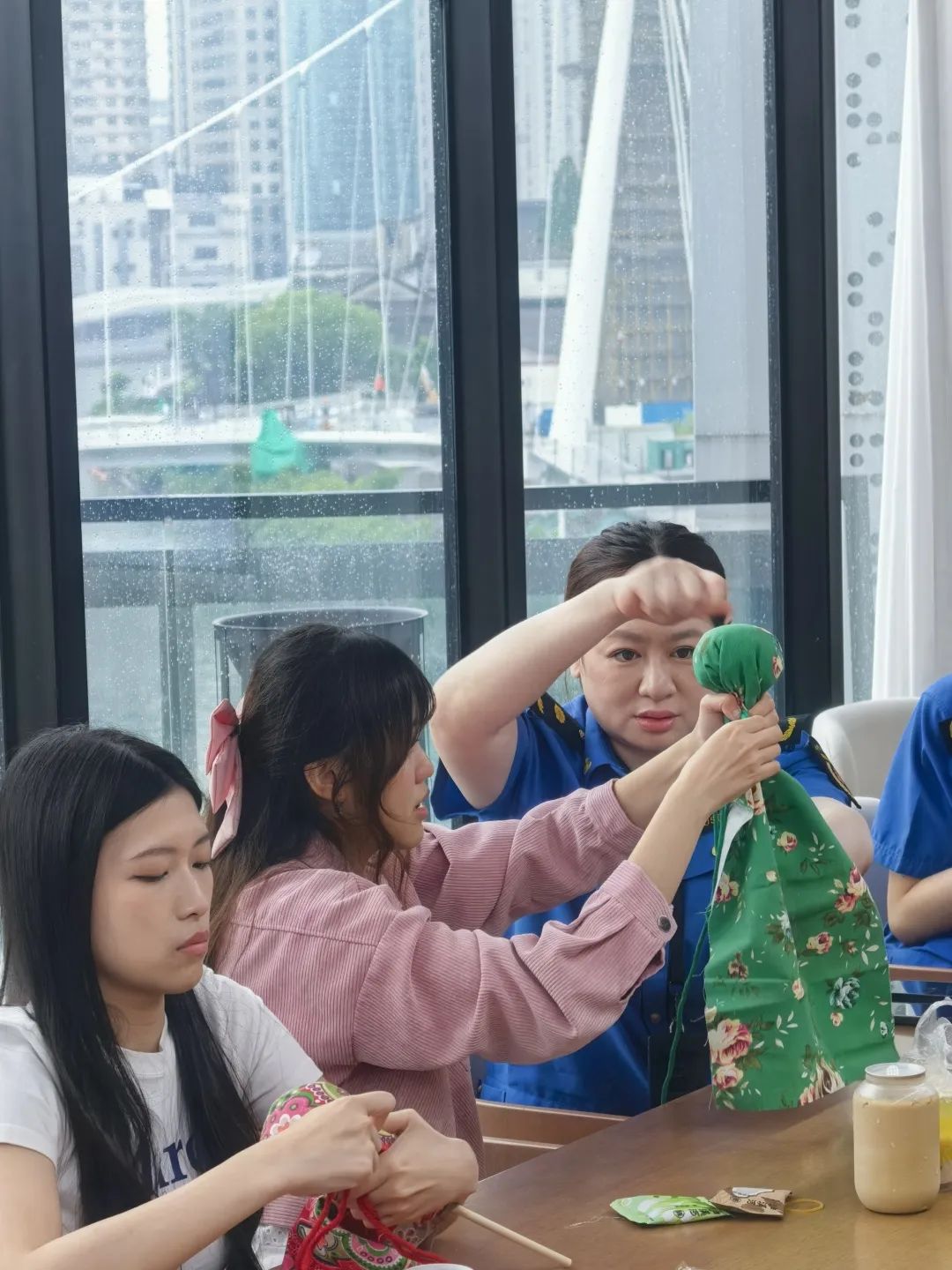 活动中,留学生们饶有兴趣地体验了法治驿站设立的“AI法律援助”、“法小淘数字律所”等便民设备,纷纷提出了“被别人宠物狗咬伤如何处理”,“在中国期间网购纠纷如何解决”等实际问题,在律师和翻译的帮助下都一一得到了解答,也体验了制作艾草香囊的民俗活动,在欢声笑语中拉近了大家的距离。