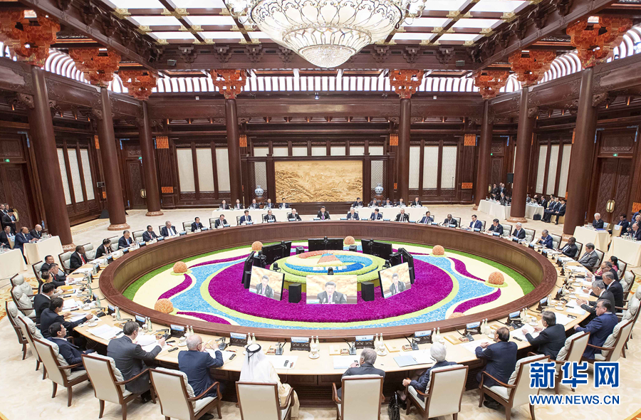 这是4月27日,第二届“一带一路”国际合作高峰论坛在北京雁栖湖国际会议中心举行圆桌峰会,国家主席习近平主持会议并致开幕辞。 新华社记者 李涛 摄
