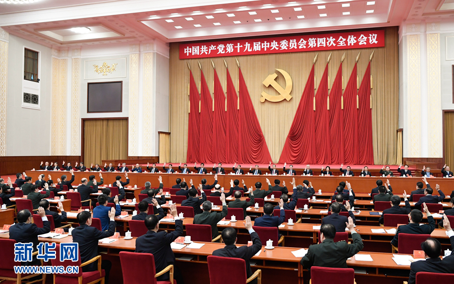 10月28日至31日,中共十九届四中全会在北京召开。会议审议通过《中共中央关于坚持和完善中国特色社会主义制度、推进国家治理体系和治理能力现代化若干重大问题的决定》,全面总结中国特色社会主义制度建设的历史性成就,集中概括中国特色社会主义制度和国家治理体系的显著优势,深刻阐述支撑中国特色社会主义制度的根本制度、基本制度、重要制度,明确了坚持和完善中国特色社会主义制度、推进国家治理体系和治理能力现代化的总体要求、总体目标和重点任务。