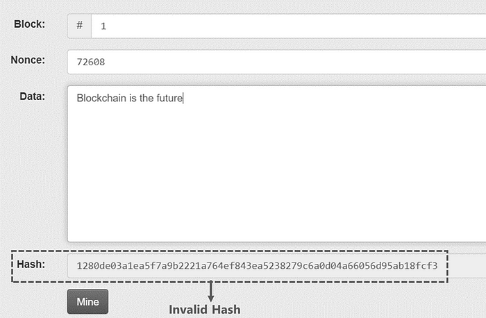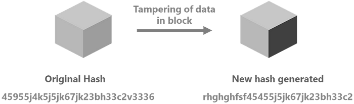 如果数据发生任何变化,哈希算法将为区块生成一个完全不同的哈希。如果新生成的哈希没有 4 个前导零,则它将不是有效的区块。