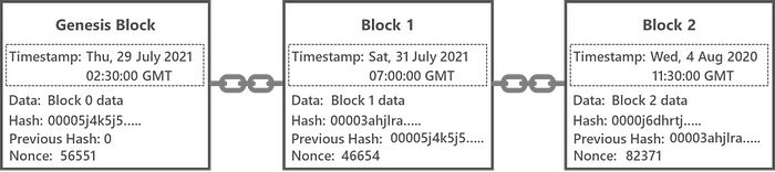 顾名思义,区块链隐喻地由按时间顺序链接在一起的区块组成,这些区块共同组成一个被称为区块链的链。每一笔交易或数据都存储在区块中。让我们通过一个现实生活中的场景来更好地理解它。假设我在 Steve 的账户中进行了一笔金额交易。必须有一个地方来存储此交易信息。这个地方被称为区块。在区块链中,一个区块记录了一些或全部尚未进入任何先前区块的最新交易。每当一个区块被“完成”时,它就成为过去的一部分,并为区块链中的下一个区块让路。一个完成的区块是交易的永久记录,一旦书写,则无法更改或删除。