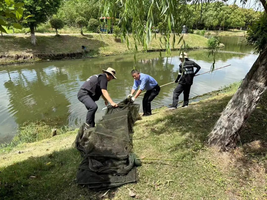 如华新镇嵩山村委会持续依托网格力量,推进河道整治工作,加强常态长效监管,确保河道违规网具整治和非法捕捞行动落到实处,为渔业资源和生态可持续发展保驾护航,营造“河畅、水清、岸绿、景美、人和”的优美生态环境。