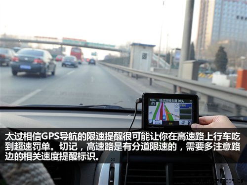 对于这种情况,我们的建议是在利用GPS的情况下更好的观察路面的标识,相信自己所见到的比相信机器更可靠。另外,在高速路上一般会在跨过道路的桥梁上或者涵洞里设置超速探头,您在行驶到这些路段的时候应该注意限速提示提前刹车减速。