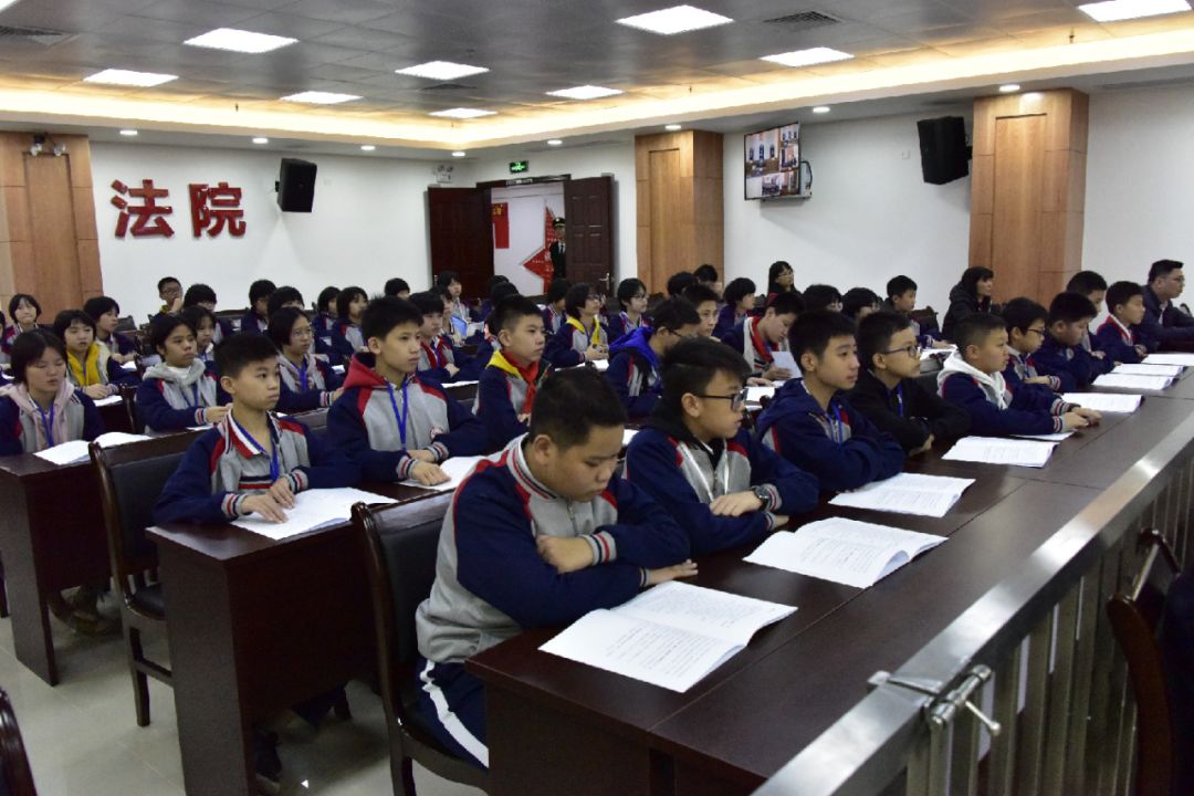 今年11月21日,恩平市方寿林中小学综合实践基地正式投入使用,由恩平市法院承建的模拟法庭也迎来了它的第一场“庭审”。当天恩平市牛江中学100余名中学生走进模拟法庭,这场“庭审”的不同之处是所有出庭的人员均由在场的学生扮演。