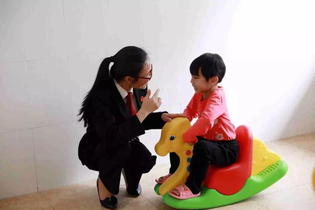 孩子们开心地迎接法官妈妈们的到来,他们用简单的语言、灿烂的笑容表达开心之情,并热情邀请法官妈妈一起玩游戏。