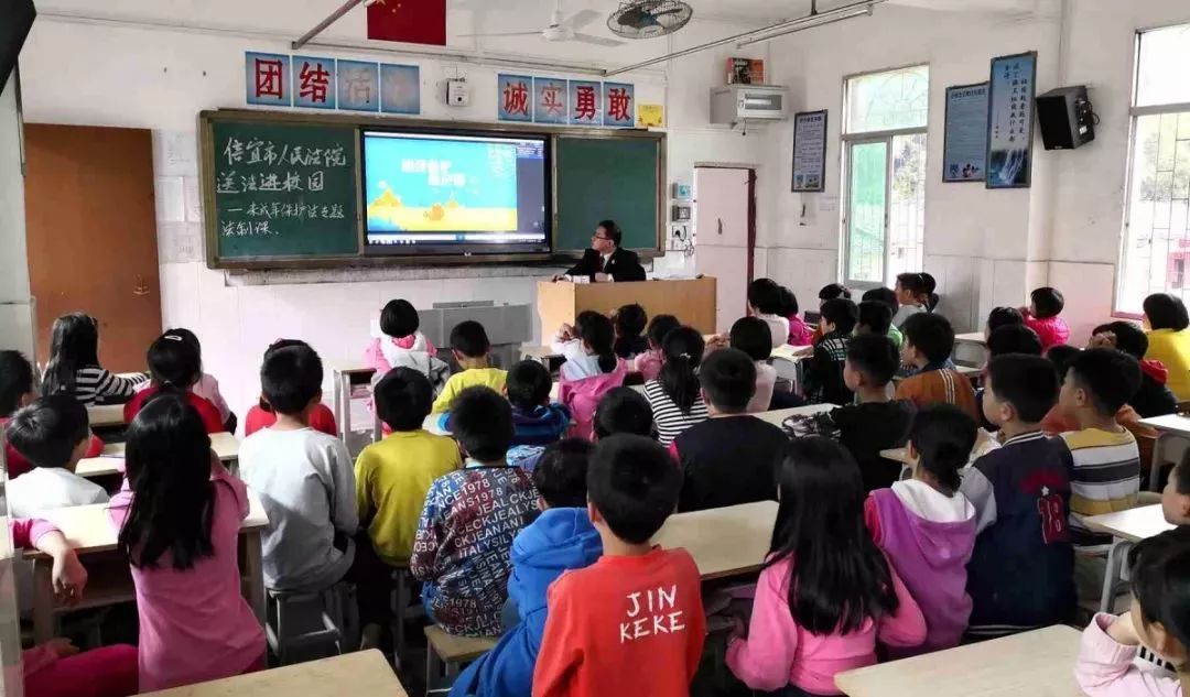合水镇黄沙小学的法治副校长、合水法庭法官助理梁家玮,通过真实发生的案例,结合动画视频向学生们生动讲解了未成年保护法和道路交通安全法的知识,让学生们通过有趣的动画故事学习法律知识。