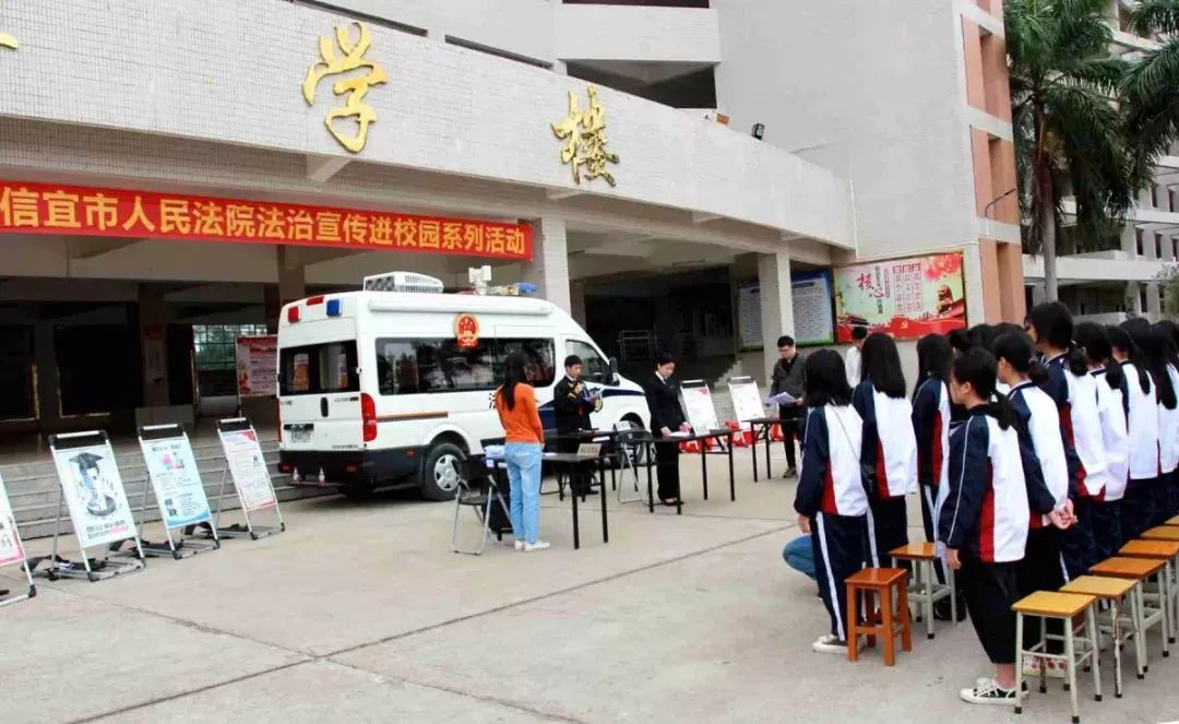 “信宜市人民法院现在开庭······”随着一声清脆的法槌声,在信宜市职教中心,一场别开生面的“庭审”开始了。原来,这是信宜法院在3·5学雷锋日开展的法治宣传进校园活动,共有60多名学生在法治课上体验了一次模拟庭审。