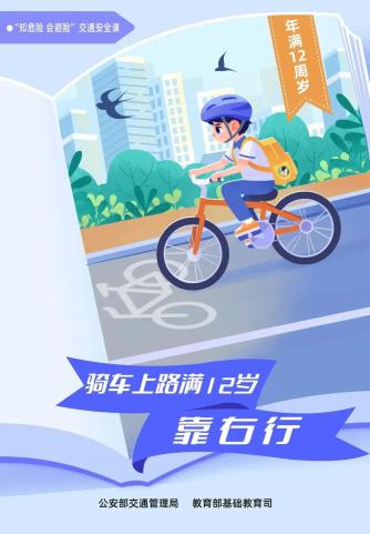 孩子未满12周岁不能骑自行车上路行驶,未满16周岁严禁骑行电动自行车上路行驶,更不能违规骑行摩托车或驾驶机动车(未满18周岁、未依法取得机动车驾驶证的严禁驾驶机动车上路行驶)。