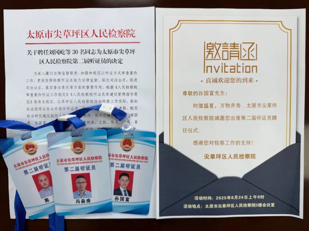 为进一步深化检察听证工作,提升司法透明度和公信力,2025年6月24日,太原市尖草坪区人民检察院隆重举行第二届检察听证员聘任仪式暨履职培训。区委常委、政法委书记王玉贵应邀出席并致辞,院党组书记、检察长杨若彬出席仪式颁发聘书并讲话,院党组成员、副检察长王秀梅主持仪式,与会领导、各部门负责人及部分干警代表见证聘任全过程。