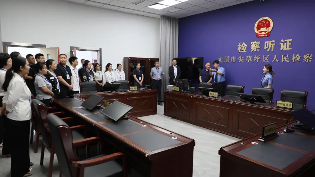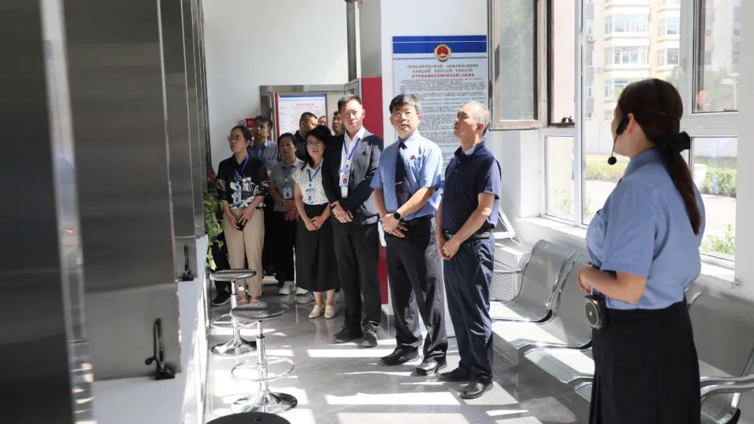 在杨若彬检察长的带领下,王玉贵书记及新一届听证员先后参观了我院检察听证室、“12309”检察服务中心、办案区等工作场所,通过讲解员介绍了解各个功能区域设置以及具体工作流程,实地感受检察听证场所的庄严氛围。