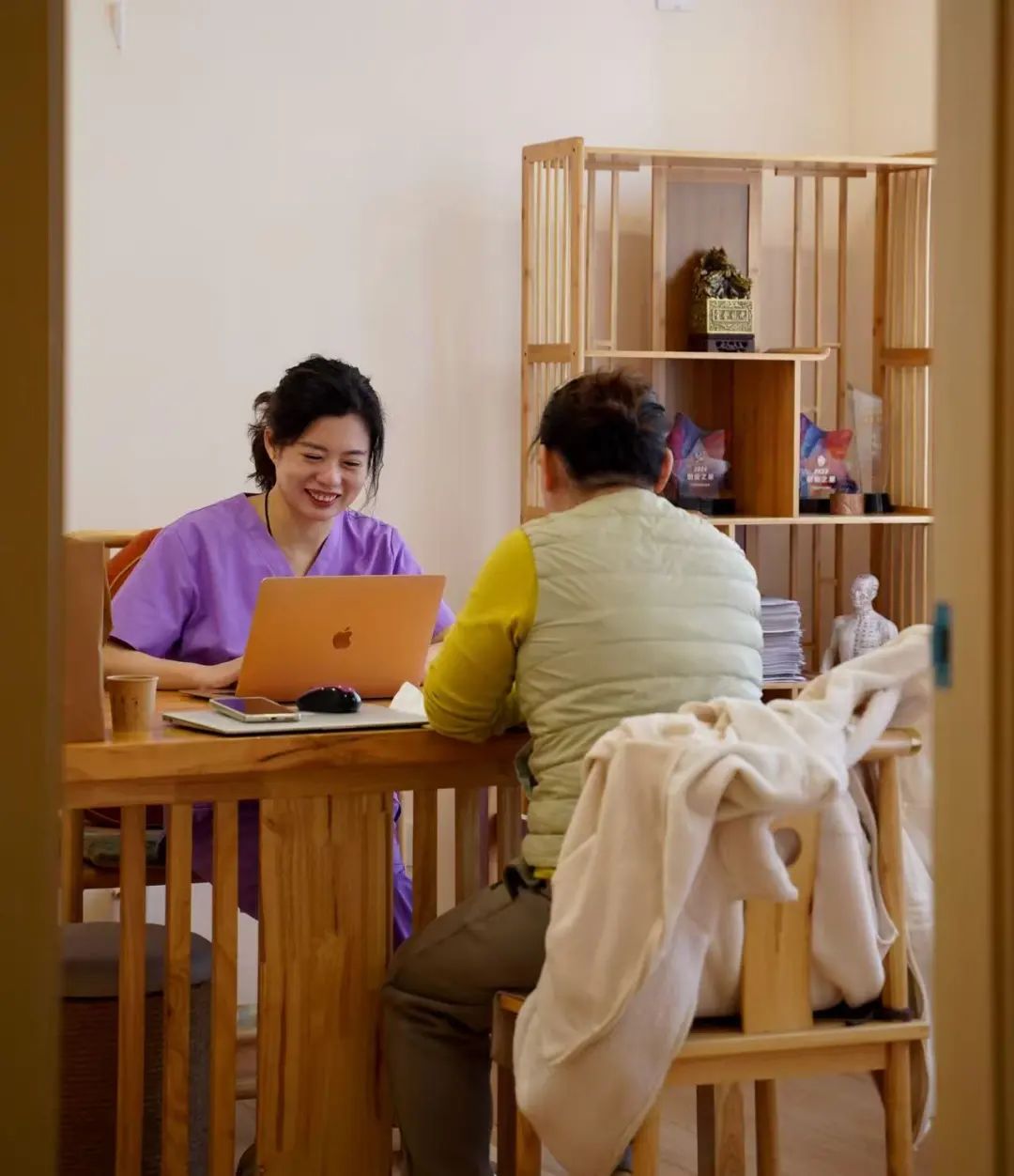 如何让中医惠及更多人?如何从“治已病”的被动诊疗转向“治未病”的主动预防?医者的责任感和使命感,促使,李文珍不断思索中医发展的更广维度。中医“未病先防、既病防变”的核心理念,帮助她勾勒出了创业蓝图。2021年,带着对中医生活化的构想,李文珍在黄浦区打浦桥街道创办了上海志圆健康咨询有限公司,旗下主营的愈舍医馆正式落地。