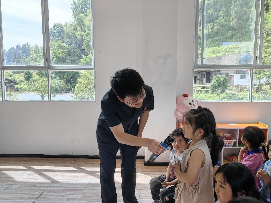 此外,干警还通过俚语化的语言向小朋友们讲解道路交通安全常识,培育小朋友们正确的交通安全观念,通过讲解“常见拐骗小朋友的招数”,引导树立正确自我防范意识,明晰自我保护的方法。孩子们在轻松愉快的氛围中掌握了切实有用的自我保护技能,在幼儿园小朋友的心中埋下了一颗法治的种子。