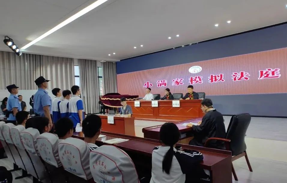 同时,还邀请了9名学生开展了一次“小满家模拟法庭”活动,学生们分别饰演“审判长”“审判员”“陪审员”“公诉人”等角色,完整再现了庭前准备、法庭调查、法庭辩论、最后陈述、庭审合议、当庭宣判等各审判环节。