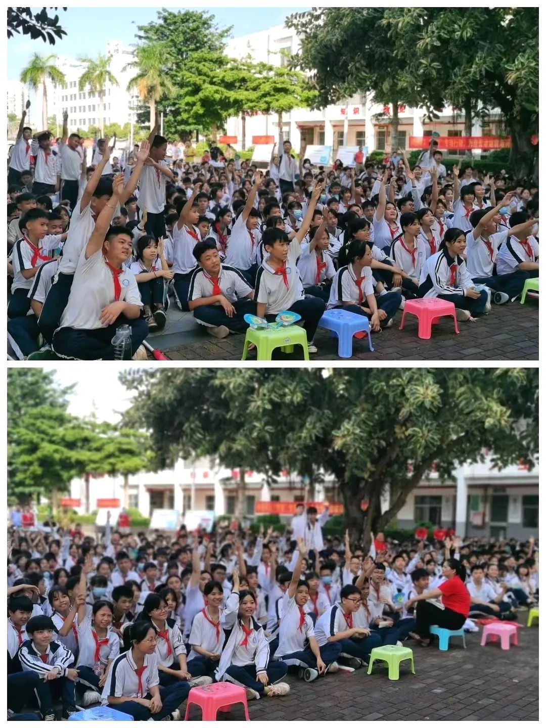 活动现场设置30道未成年人保护和预防未成年人犯罪法律知识竞答题。一个个竹笋似的小手纷纷举过头顶,“老师,我来我来!”“老师,叫我......”,现场炸开了锅,大家以饱满激悦的状态加入了这场没有“硝烟”的战斗!
