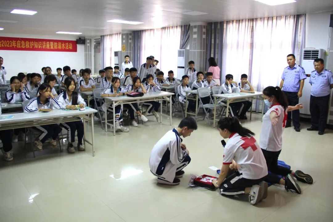 县红十字会符罗林讲师以理论知识和实践操作相结合的方式,通过案例分析、示范操作、现场演练等形式对心肺复苏、除颤仪的使用及气道异物梗阻等急救知识进行详细介绍,现场气氛高涨。课后,学员分为6组,并在老师的指导下进行理论测试、实操练习。