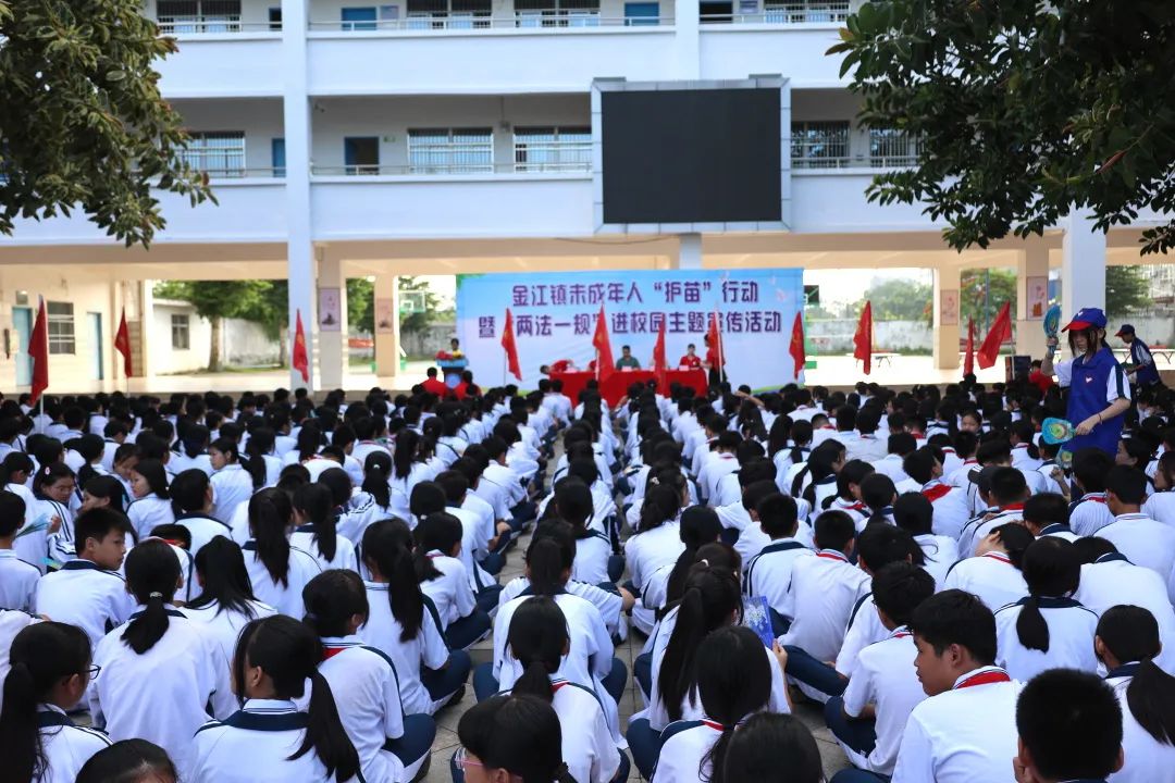 为推进未成年人“护苗”专项行动工作,提高未成年人法律意识和安全意识。5月29日,金江镇在澄迈县第三中学举行未成人“护苗”行动暨“两法一规”进校园主题宣传活动。镇领导陆家良,孙畅、任琪瑶出席活动。县红十字会、金江派出所、金江镇相关中心(岗室)及县三中全体师生参加。