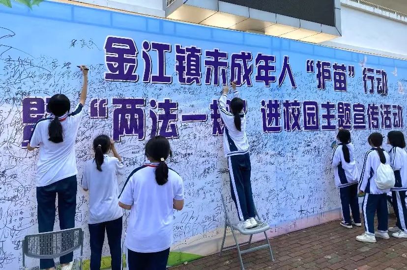 参加活动的学生、老师有序在主题活动墙上进行签名,认真签下自己的名字,有序观看“护苗”知识展板,进一步巩固了全体师生的安全防范知识和提升自我保护意识。