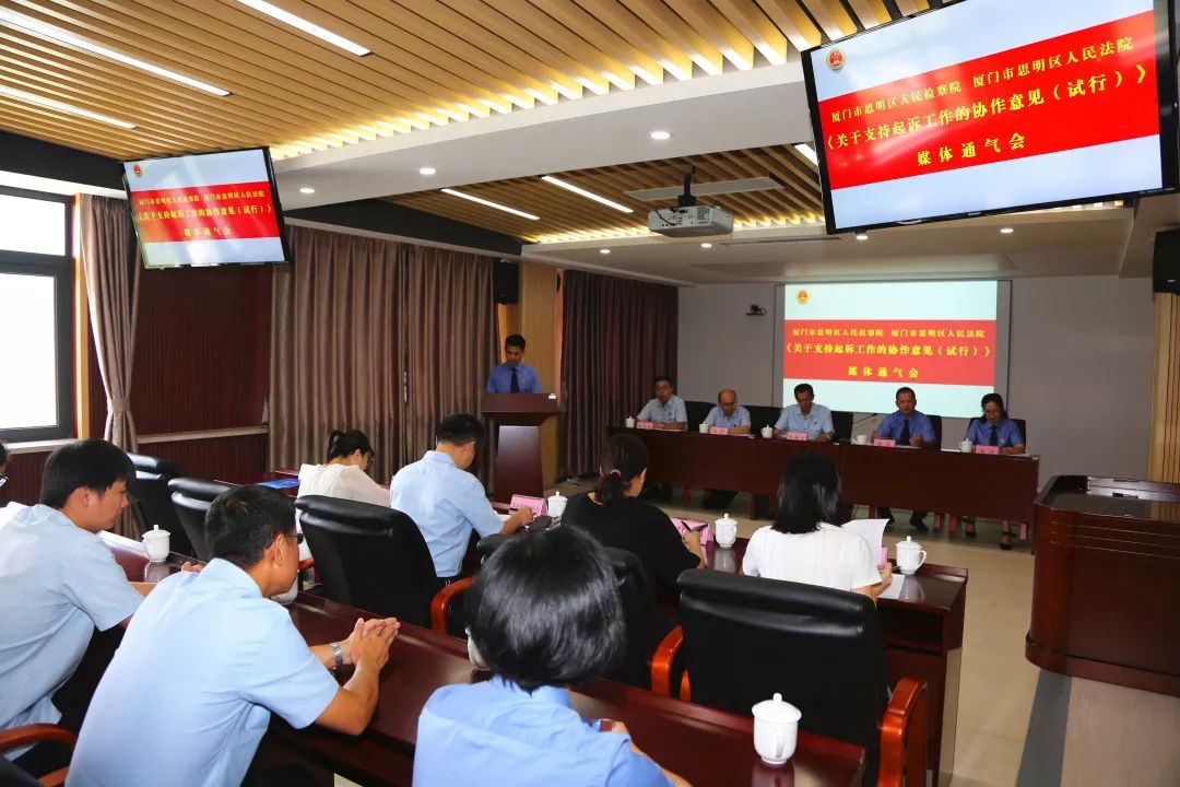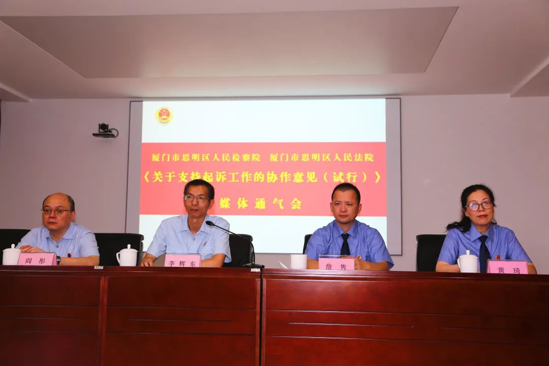为进一步保护社会弱势群体、维护社会公共利益,充分发挥支持起诉的作用,8月10日上午,厦门市思明区检察院、思明区法院联合会签《关于支持起诉工作的协作意见(试行)》,推进支持起诉工作规范化、制度化开展。同时,举行媒体通气会,邀请福建法治报、厦门日报、厦门晚报、海西晨报等多家媒体代表参加,向媒体通报近年来思明区支持起诉工作开展情况,积极向社会宣传支持起诉工作。