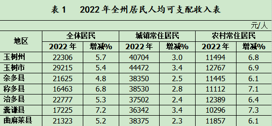 2022年,全体居民人均可支配收入22306元,同比增长5.7%。城镇常住居民人均可支配收入40704元,同比增长3.0%;农村常住居民人均可支配收入11494元,同比增长6.8%。