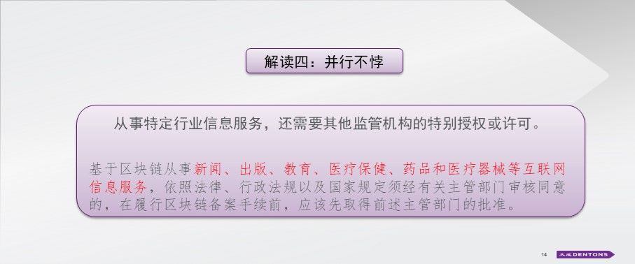 如果所从事的行业是区块链与其他行业相结合,那么,其他行业的行政法规也要遵循。基于区块链从事新闻、出版、教育、医疗保健、药品和医疗器械等互联网信息服务,依照法律、行政法规以及国家规定须经有关主管部门审核同意的,在履行区块链备案手续前,应该先取得前述主管部门的批准。