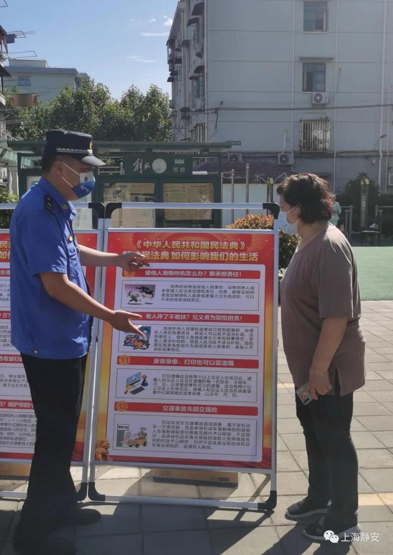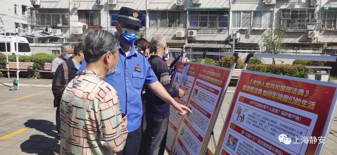 为助力静安区创建“全国法治政府建设示范区”,全面履行“谁执法谁普法”责任,彭浦镇综合行政执法队深入社区构建法治文化新阵地,为居民定制“法润彭浦镇”主题法治宣展活动,并订制法治宣传礼包赠予社区居民,内附《新时代的人民法典宣传手册》供居民朋友们阅读了解。城管队员动员居民,把所学的法律知识传递给家人朋友,开启全民贯彻民法典、实施民法典的良法善治氛围。