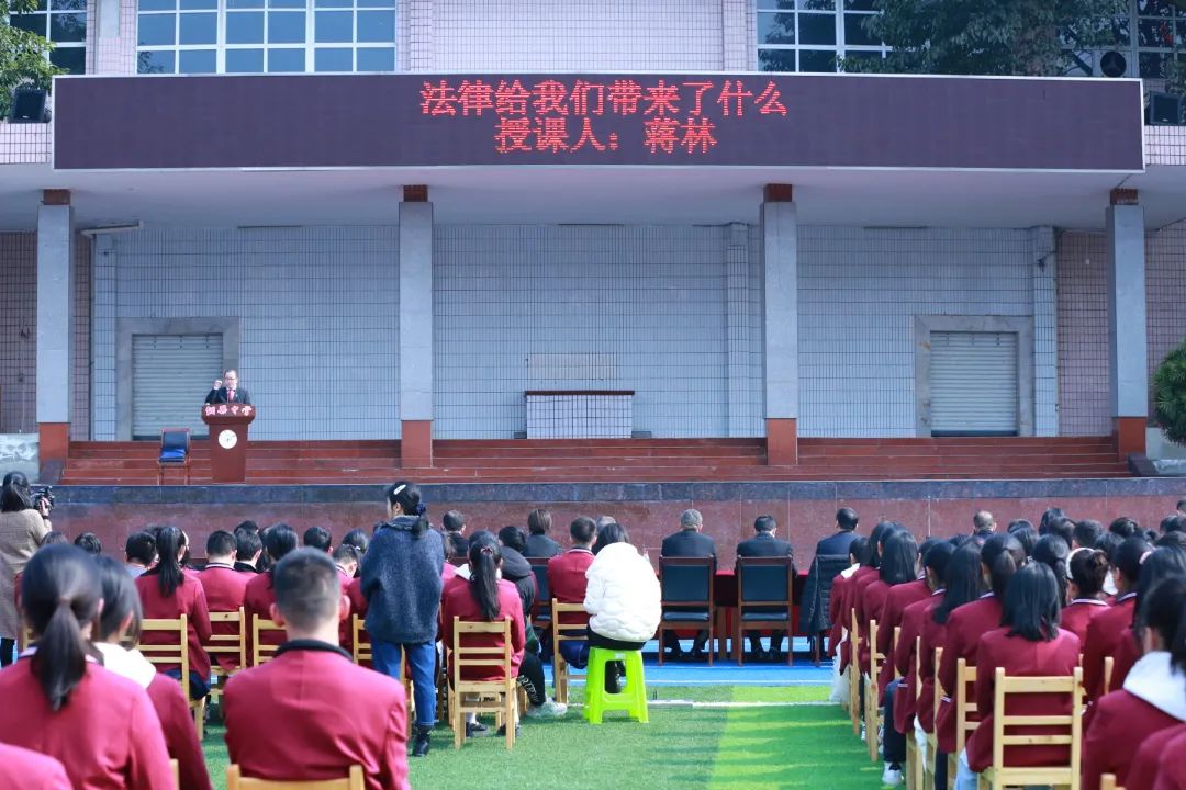 市一中法院刑二庭庭长蒋林以“法律给我们带来了什么”为题,采用浅显易懂的表述方式,从“法律是什么”“法律怎么保护我们”“我们该怎么做”三个方面,结合鲜活生动的案例、贴近生活的故事,为全体师生讲授了一堂别开生面的“开学第一课”。