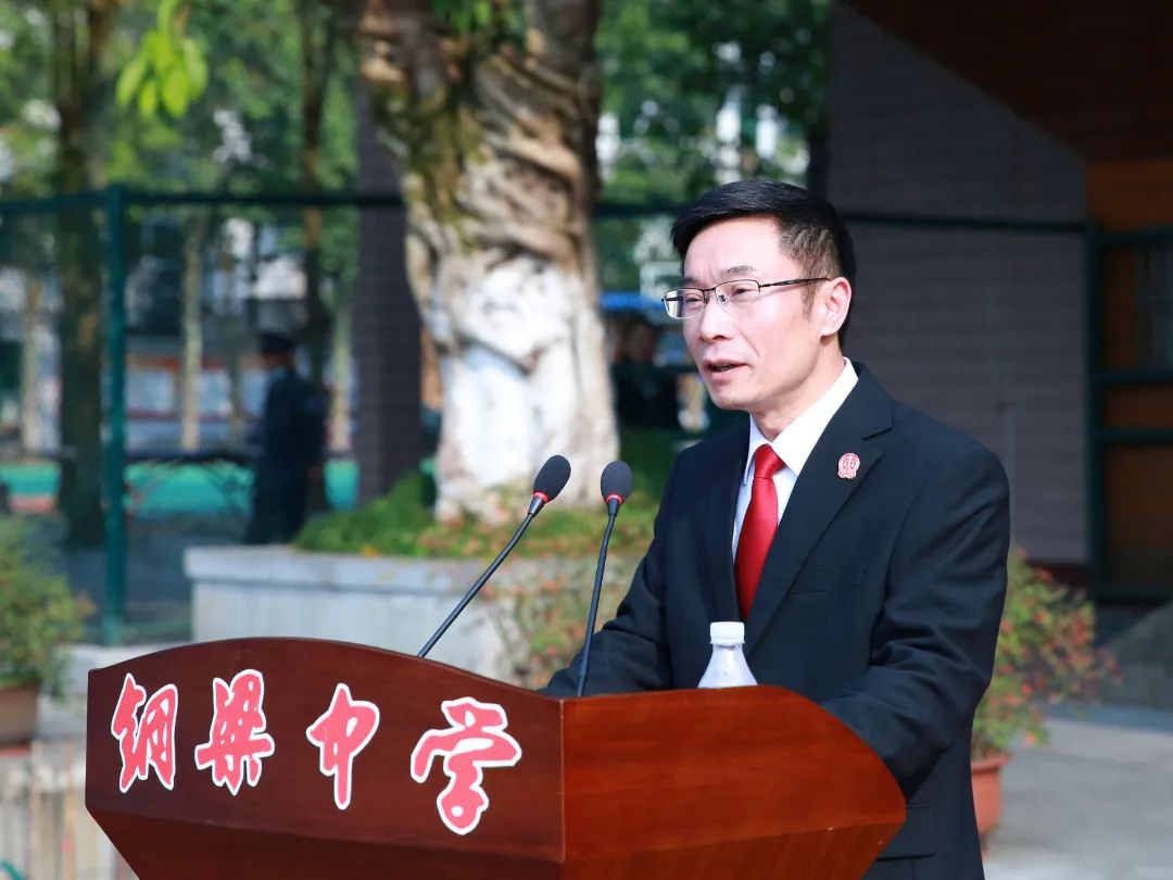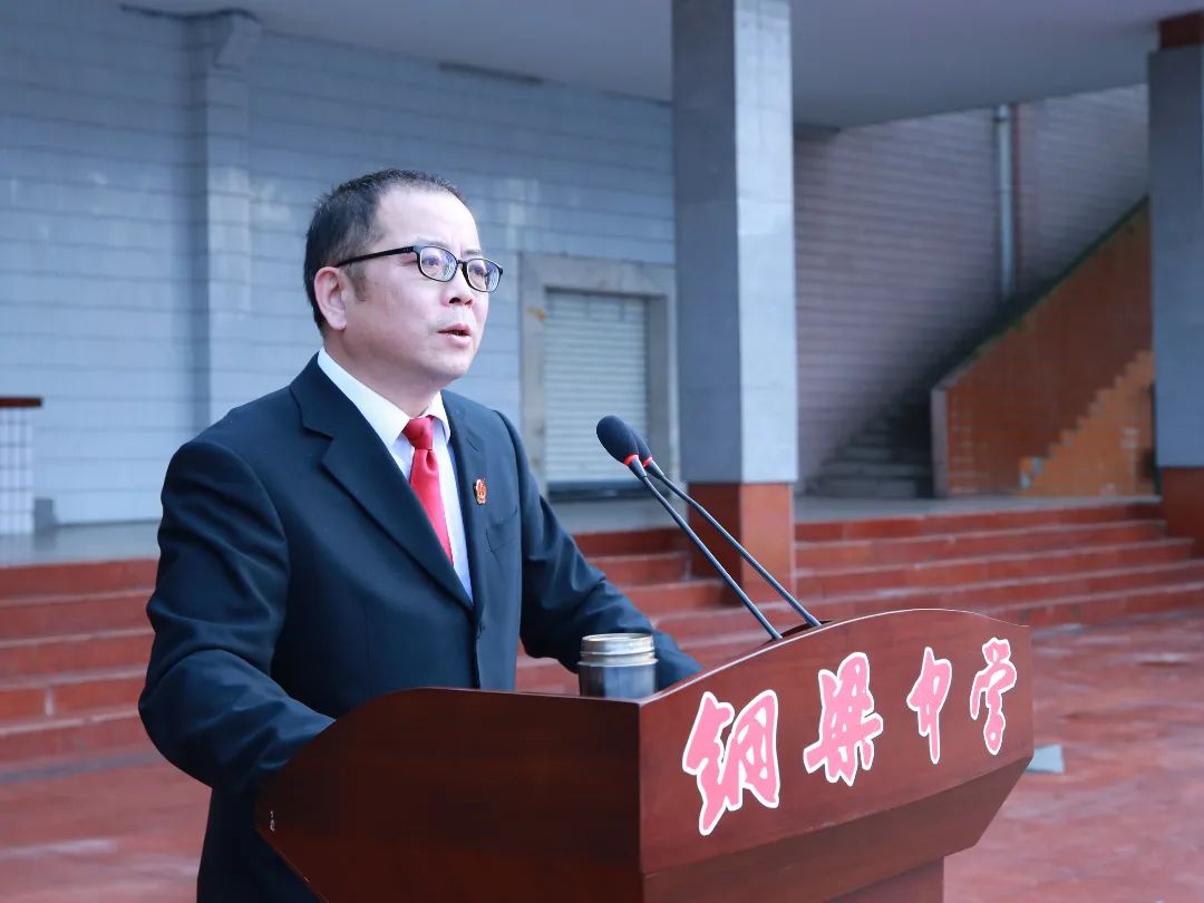 活动开始,全场起立,高唱中华人民共和国国歌。铜梁中学校长陈亮发表致辞,介绍了铜梁中学的悠久历史、成绩荣誉,以及学校抓法治教育所取得的成果,表示此次活动必将促进全校进一步形成尊法学法守法用法的良好氛围,同学们也必将更加牢固树立公民意识、成长为合格的社会主义建设者和接班人。