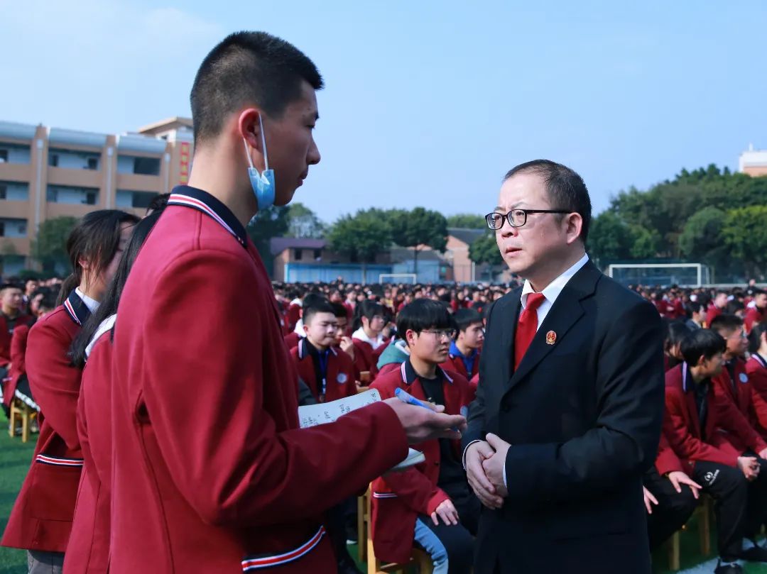 授课及互动结束后,铜梁中学郑重聘请陈远平副院长担任法治副校长并颁发聘书。陈远平副院长对同学们深情寄语,提出四点希望: