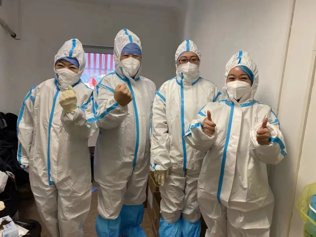 完成一天的接待工作、脱下防护服后,每个人的身上都像水里泡过一样,眼镜上的水汽令视线模糊,头发也黏成了一缕一缕。