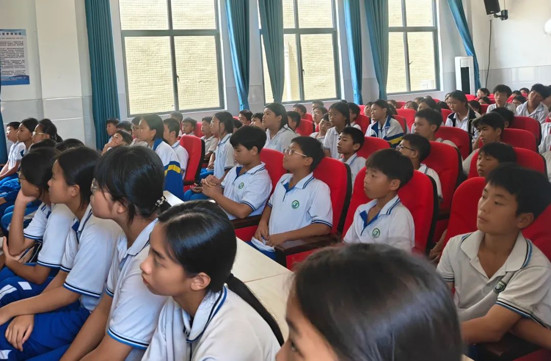 2025年6月28日,在暑期即将来临之际,文昌法院刑事审判庭与文昌市公安局东郊派出所共同在东郊中学开展法治副校长送法进校园活动。东郊派出所副所长潘立国与刑庭法官助理符亮、书记员林思颖在道路交通安全、禁毒、反校园欺凌、反电诈、反走私等方面为在座的同学们进行了普法宣讲。