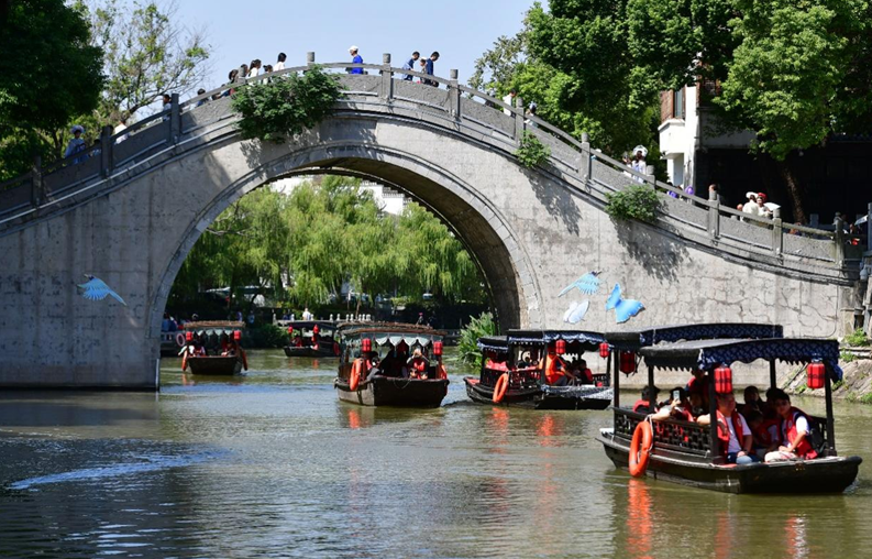 “现在来三河古镇玩和以前不一样了,体验感很新奇,乘着游船不仅可以听到悠扬的民间小调,还可以看到科技感十足的水帘画幕”游客李乐说。如今,在合肥市区内的国家5A级旅游景区、中国历史文化名镇三河古镇内,游客们有了更加现代化科技感的体验。