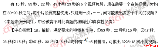 数量关系部分题目考查知识点较普通,几何问题扎堆,占比达三分之一。难度较去年略显提高,需要较强的分析能力。例如排列组合题目,需要分析后才能求解。