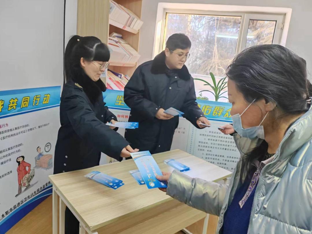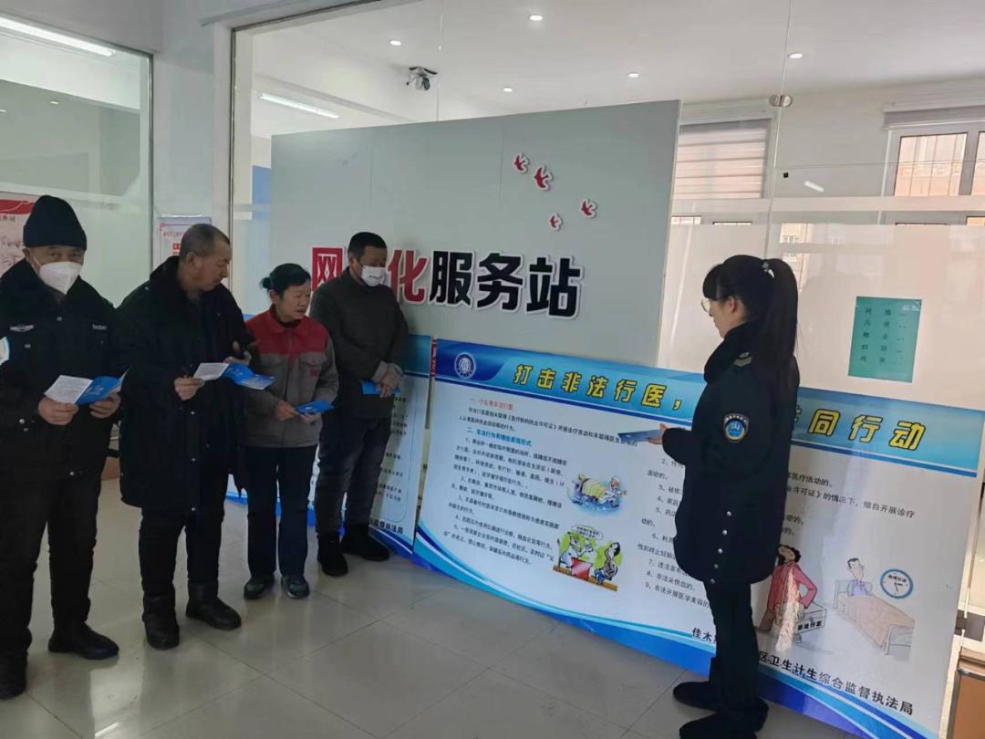 为增强人民群众的安全就医意识,提高辨别非法行医的能力,切实维护人民群众健康权益。近日,前进区卫生监督局开展了以“严厉打击非法行医,共建和谐医疗环境”为主题的普法宣传活动,推动全区医疗乱象整治工作取得实效。