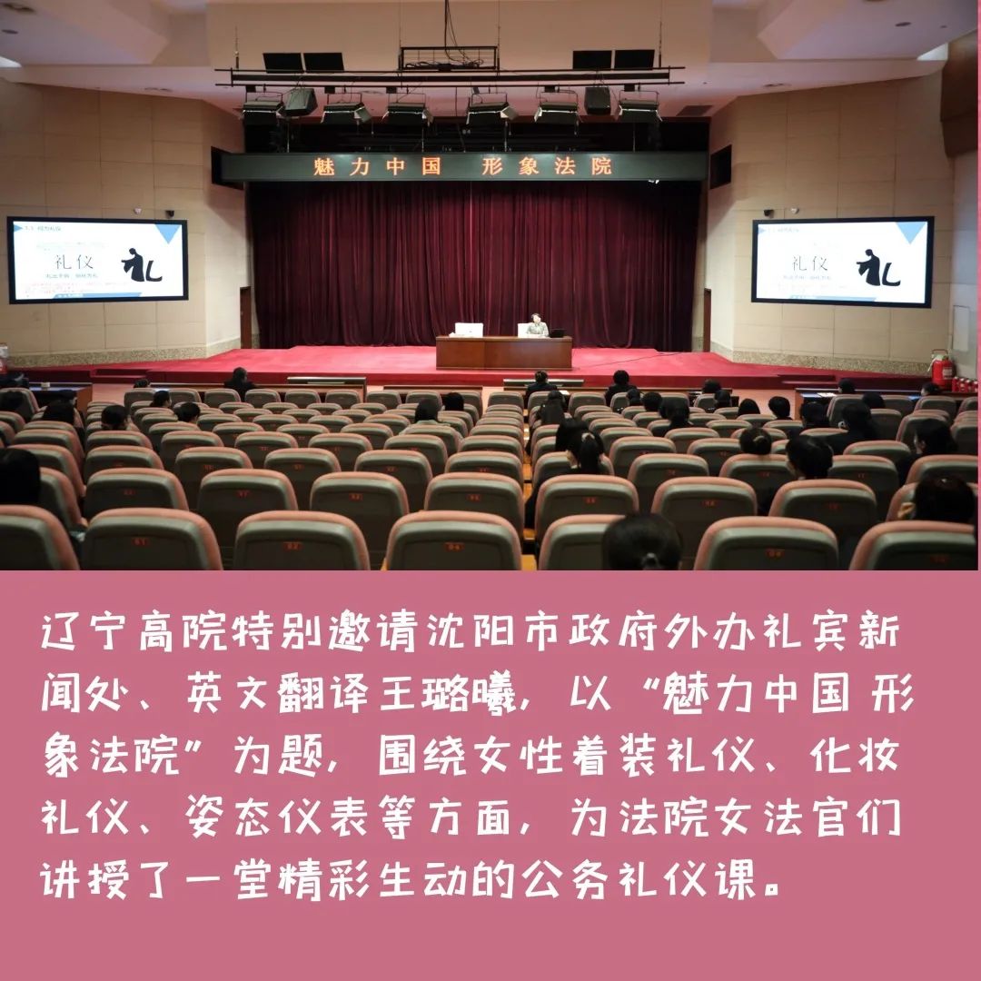 为进一步规范法院公务礼仪,增强文明服务意识,提升职业素养,更好地树立新时代女法官良好形象,辽宁高院特别邀请沈阳市政府外办礼宾新闻处、英文翻译王璐曦,以“魅力中国 形象法院”为题,围绕女性着装礼仪、化妆礼仪、姿态仪表、社交礼仪等方面,为女法官们讲授了一堂精彩生动的公务礼仪课。