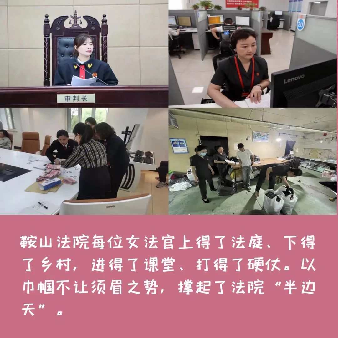 鞍山两级法院的女法官们上得了法庭、下得了乡村、进得了课堂、打得了硬仗。以巾帼不让须眉之势,撑起了法院“半边天”。