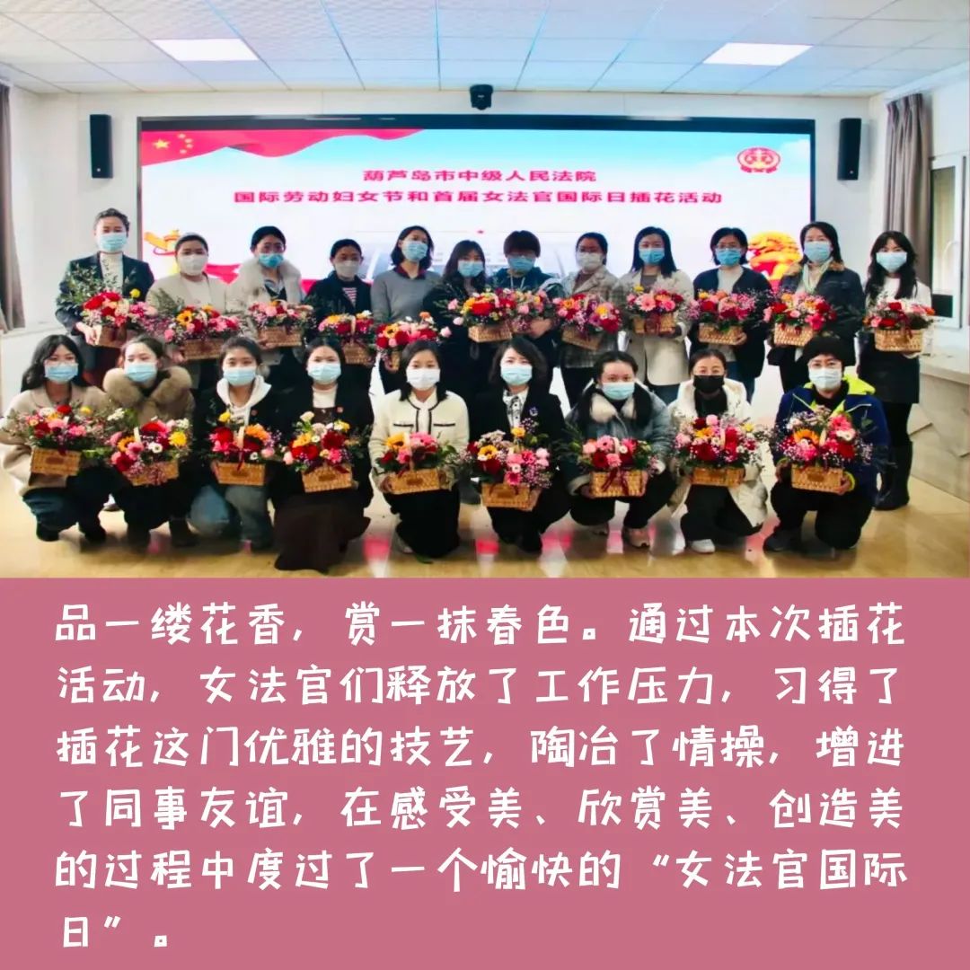 葫芦岛市中级人民法院组织开展“花香满春天·巾帼展笑颜”主题活动,邀请女法官体验插花艺术。通过此次活动,女法官们释放了工作压力,陶冶了情志情操,增进了友爱友谊。